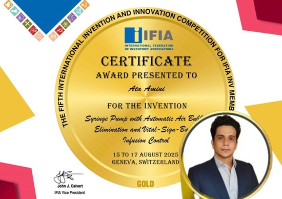 عطا امینی، دانشجوی کارشناسی ارشد مدیریت اطلاعات سلامت و انفورماتیک پزشکی، با اختراع پمپ سرنگ هوشمند پزشکی موفق به کسب مدال طلای مسابقات در رقابت های بین المللی اختراعات شد.این رویداد علمی که با حضور بیش از ۱۱۰۰ اختراع و نوآوری از ۲۷ کشور جهان، طی روزهای ۱۵ تا ۱۷ آگوست ۲۰۲۵ (۲۴ تا ۲۶ مرداد ۱۴۰۴) به‌صورت مجازی و به میزبانی کشور سوئیس برگزار شد. این دستگاه نوآورانه با قابلیت‌هایی همچون هواگیری خودکار برای جلوگیری از ورود حباب به بدن بیمار، سیستم هشدار سخنگو برای اطلاع‌رسانی به کادر درمان و بیماران، اتصال بی‌سیم به سیستم مرکزی بیمارستان، هماهنگی با مانیتورینگ علائم حیاتی و کنترل دسترسی با کارت هوشمند و بیومتریک طراحی شده است.